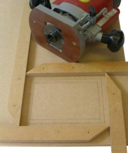 Templates for straight-sided figures can be easily made using a few straight ‘sticks’ of MDF plus your router, guide bush and a straight cutter. The picture shows an example, which happens to be a template for photo frames. The size of the centre opening will depend on the size of the print for which the template is being made.
